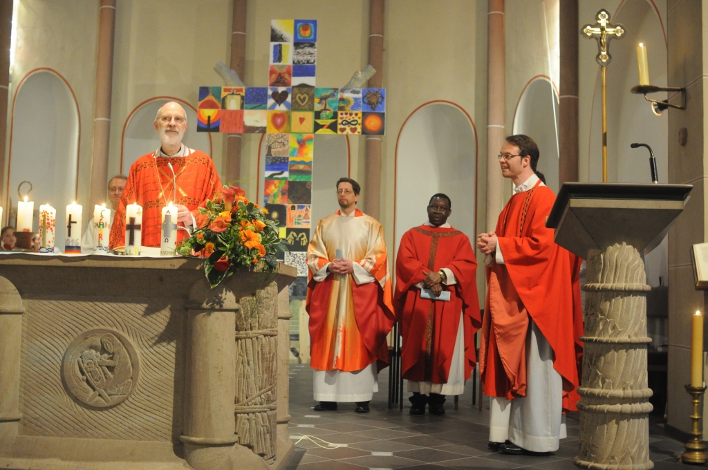 Ein halbes Jahr lang hatten sich die 15- und 16-Jährigen auf die Firmung vorbereitet und sich an zwei Wochenenden, vier Projekttagen und zwei Elternabenden immer wieder von Pfarrer Süß und den acht ehrenamtlichen Firmkatecheten dazu anregen lassen, sich dem eigenen Christsein zu stellen und die Aktualität der Botschaft Jesu auch im Jahr 2016 an konkreten Impulsen und Aufgabenstellungen für sich zu überprüfen. Dazu gehörte unter der einfühlsamen Anleitung der jeweiligen Gruppenleiter vor allem der intensive Austausch – auch in der großen Gemeinschaft – über die Themen „Jesus“ und „Gott – eine Spurensuche“. Immer ging es den Verantwortlichen um die Erfahrbarkeit von konkretem Christsein in den unterschiedlichsten Situationen und an den unterschiedlichsten Orten: so beispielsweise in der Begegnung mit Mitarbeitern des Bensberger Hospizes, mit jugendlichen Flüchtlingen sowie Menschen im Krankenhaus oder Altenheim. Aber auch die „wirksamen Zeichen der Liebe Gottes“ – die Sakramente – standen an einem der Projekttage ganz im Fokus der Vorbereitung auf die Firmspendung. Wie auch die „Versöhnungsgespräche“, die die Jugendlichen nach eigener Aussage als ausgesprochen wohltuend und befreiend erlebten, einen zeitlich großen Raum einnahmen. An einem anderen Tag ging es unter der Überschrift „Was ist mein Glaube?“ um die gewissenhafte Beschäftigung mit dem apostolischen Glaubensbekenntnis. Und schließlich ging es auch um die zentrale Frage nach dem guten Geist Gottes, den Heiligen Geist, und darum: Welcher Geist ist es, der uns anstecken, „be-geistern“ kann?